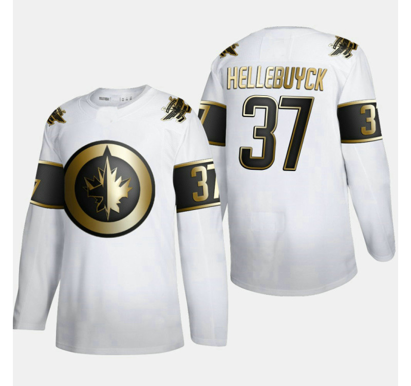 - Men's Winnipeg Jets Connor Hellebuyck #37 Golden Edition White Authentic Jersey