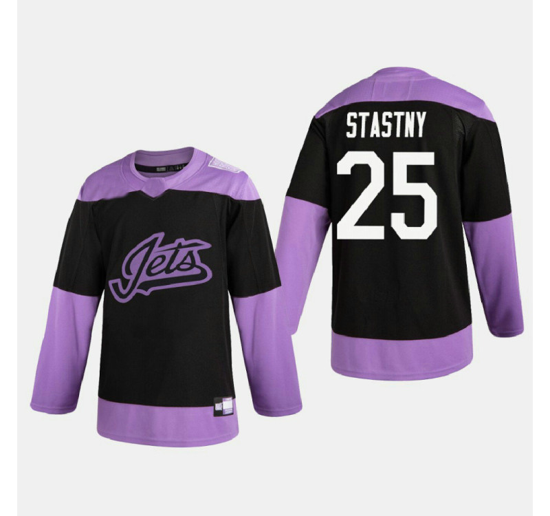 - Men's Winnipeg Jets Paul Stastny #25 2020 Hockey Fights Cancer Practice Black Jersey