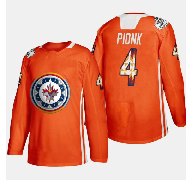 - Neal Pionk Winnipeg Jets 2022 WASAC Night Orange #4 Jersey Indigenous Warmup