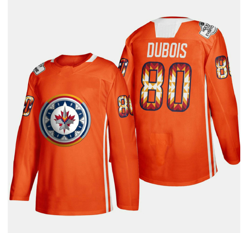 - Pierre-Luc Dubois Winnipeg Jets 2022 WASAC Night Orange #80 Jersey Indigenous Warmup